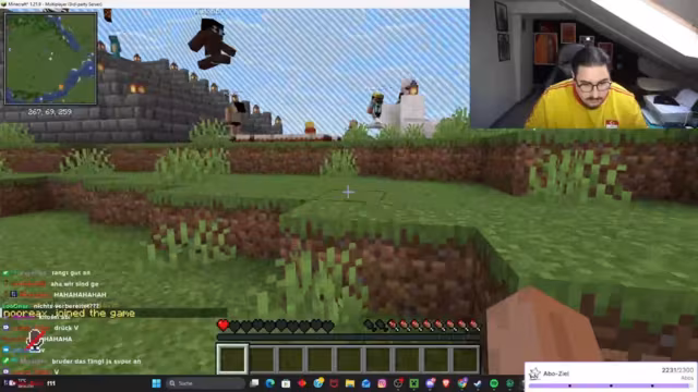 Die Teilnehmer bereiten sich auf eine gemeinsame Minecraft-Session vor. Zunächst treten Herausforderungen beim Server-Beitritt und der Installation notwendiger Modifikationen auf. Spieler müssen die korrekte Minecraft-Version und eine spezifische Mod-Datei herunterladen. Nach der erfolgreichen Einrichtung beginnt die Gruppe mit der Erkundung der Spielwelt, sucht nach Ressourcen und plant erste Bauvorhaben wie ein 'Hayat Hotel' und eine Brücke. [Just Chatting]