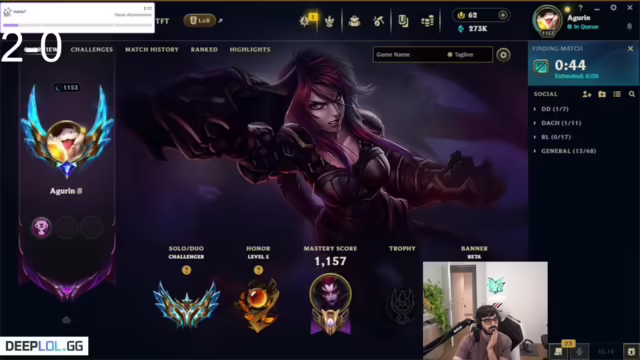 Agurin analysiert in League of Legends das Matchmaking und die Teamdynamik im High-Elo-Bereich. Er hadert mit unfairen Spielen, kritisiert Mitspieler für Fehler, unpassende Champion-Wahlen und analysiert Item-Builds. Diskussionen über Serverstandorte und frühere Erfahrungen fließen ein. [League of Legends]