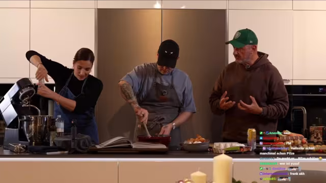 Ein besonderes Weihnachtsdinner wird zubereitet, bei dem Sally, Frank Rosin und Marcel gemeinsam in der Küche stehen. Das Menü umfasst eine Schokoladentarte, türkische Linsensuppe und Lasagne Rolls. Während der Zubereitung kommt es zu humorvollen Anekdoten und Diskussionen über Kochtechniken. Frank Rosin bewertet die Gerichte und es werden zukünftige gemeinsame Projekte angekündigt. [Special Events]