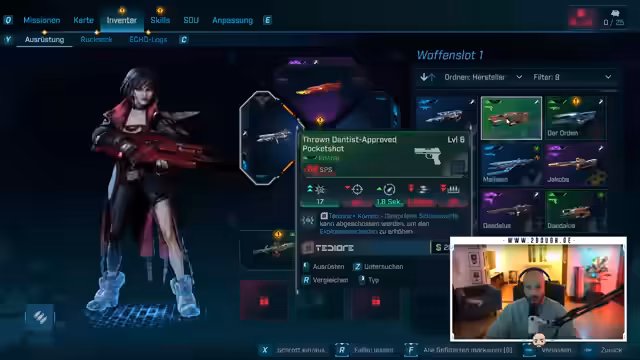 01:20:17Der Streamer entdeckt, dass er Skillpunkte erhalten hat, zögert aber, diese zu verteilen, da er sich noch nicht auf einen Spielstil festgelegt hat. Er findet Skins und ist begeistert von den Anpassungsmöglichkeiten. Die Funktion der Silos wird erkundet, wobei sie als Respawn-Punkte identifiziert werden. Der Streamer erlebt Performance-Probleme mit niedrigen FPS, was das Spielerlebnis beeinträchtigt. Trotz dieser Probleme äußert er sich begeistert vom Spiel und seinem Suchtpotenzial. Er zeigt eine starke Bindung zum Spiel und hat Schwierigkeiten, aufzuhören. Versehentlich kauft er einen Gegenstand und verkauft ihn dann als Schrott. Er speichert das Spiel, um es später fortzusetzen.