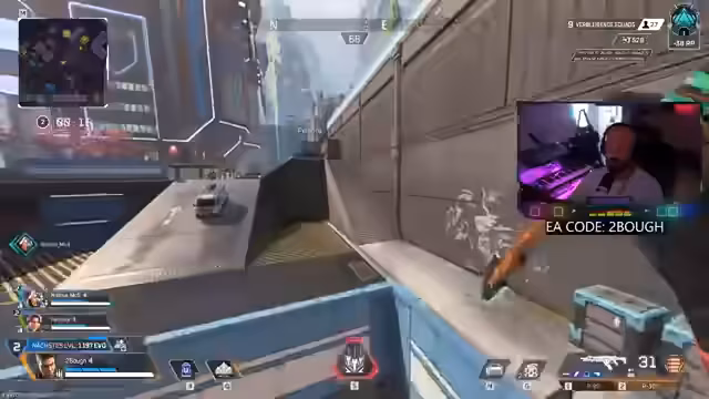 01:46:20Nach dem gescheiterten Versuch Resident Evil zu spielen, wechselt der Streamer zu Apex Legends. Er beschreibt seine Lieblingswaffe, die 301, und das Gameplay-Feeling. Die Partie verläuft eher passiv, da das eigene Team kaum kämpferisches Interesse zeigt. Es kommt zu einem überraschenden Kampf gegen ein zweites Team, das unerwartet auftaucht, und das Match endet abrupt.
