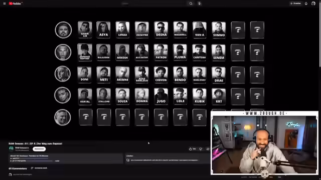 00:50:51Nach einer kurzen Pause und dem Verweis auf eine anstehende Rap La Rue-Folge beginnt die 'Raw Season 8', 'Der Weg zum Rapstar'. Der Streamer äußert seine Sehnsucht nach mehr Summer-Vibes und guten Rappern. Er kritisiert die Künstler in der ersten Runde, die oft ihren in der Bewerbung gezeigten Stil ändern, was für Verwirrung sorge. Er hofft auf eine echte Diversifizierung der Genres. Der erste Teilnehmer der neuen Season stellt sich mit einem Song vor, der als 'Pop-Punk-Type' beschrieben wird und eine gemischte Reaktion hervorruft.