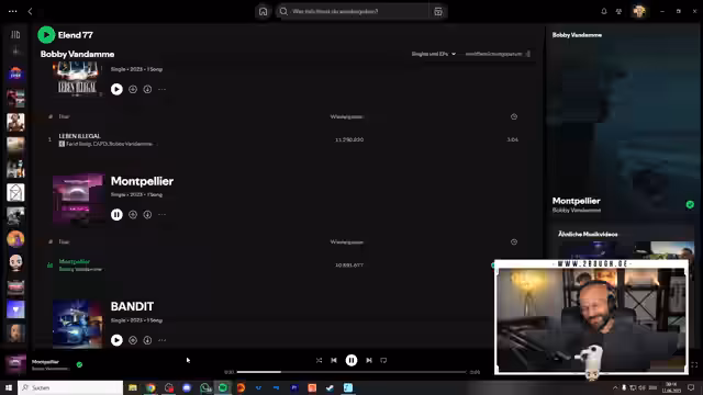 01:05:25Der Streamer stellt den neuen Song 'Zeit ist Geld' von Bobby Van Damme vor. Er hebt dessen positive und dankbare Ausstrahlung hervor und analysiert den Text als Geschichte über den Werdegang vom Nichts zum Erfolg. Beatmäßig beschreibt er den Song als eine Mischung aus fröhlicher Glockenmelodie und einer leicht melancholischen Grundstimmung, was ihm eine schöne Abwechslung zu den vorherigen Songs erscheint.