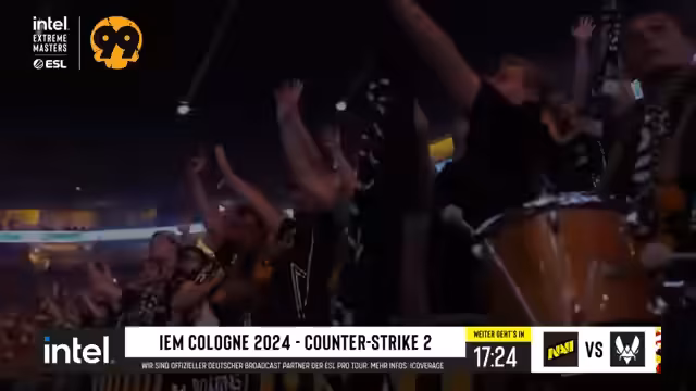 04:25:08Nach der ersten Hälfte steht es sehr knapp und unentschieden. Navi hat auf Map zwei zwei Map Points, nutzt diese jedoch nicht und verliert die Map dadurch. Vitality geht in die dritte Map in Führung, die als entscheidend für den weiteren Verlauf des Best-of-Fives gilt. Kommentatoren loben das absolute Finale auf Augenhöhe, das die Zuschauer bei der Stange hält. Die Stimmung in der Crowd ist ebenfalls hoch und wird vom Kommentarator als ebenso intensiv beschrieben.