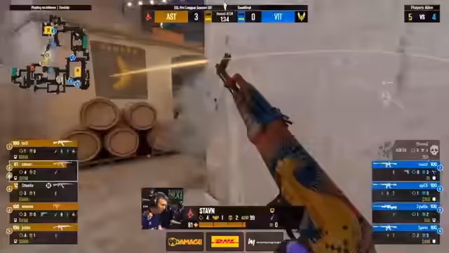 03:30:23Die beiden Teams treten in einem intensiven Halbfinale der ESL Pro League gegeneinander an. Vitality zeigt bereits in der ersten Hälfte eine starke Performance und gewinnt die meisten direkten Duelle. Apex von Vitality dominiert auf seiner Map-Site, während Astralis versucht, dies zu kontern. Die Force-Rounds von Vitality erweisen sich als besonders effektiv, da sie bereit sind, mit allem zu forcieren, um ihre Führung zu halten und Astralis den Durchbruch zu verwehren.