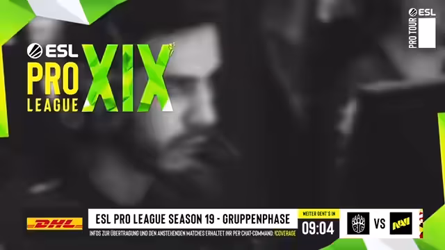04:40:10Während der Pause des Matches, wird auf einem anderen Bildschirm ein Match der Ninjas in Pyjamas gegen Pera gezeigt. Der Caster nutzt diese Gelegenheit, um auf die aktuelle Situation von NIP hinzuweisen, die in der ESL Pro League nicht gut laufen und in die unteren Bracket könnten fallen. Gleichzeitig wird das Turnament von Ence gegen Monte erwähnt, welches zur selben Zeit stattfindet und um den Einzug in die Playoffs der Gruppe C geht.