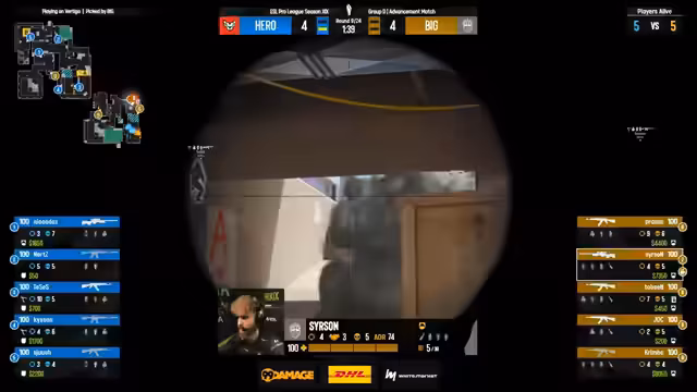01:00:00Nach der ersten Map Anubis, die Big klar gegen Pera verlor, beginnt das Map Veto. Heroic pickt Nuke, ihre zweitbeste Map, während Big überraschend Vertigo über Anubis wählt. Die dritte Map wird Ancient. Die Eröffnungsrunden auf Nuke dominieren Heroic und führen zu einer frühen Führung. Besonders starker Fokus von Heroic auf die Outside-Position und die überlegene Performance des Starspielers Krimbo gegen das Duo Nerds und Süßen sind die zentralen Beobachtungen der Anfangsphase.