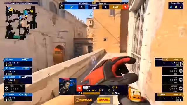 04:02:39Nach einer kurzen Pause und technischen Problemen geht das Match weiter. FaZe setzt ihre gute Leistung fort und dominiert die Mitte und den Lang-Spot. Kerrigan gelingt ein Double-Kill, was FaZe einen klaren Vorteil sichert. G2 wirkt überfordert und kann sich kaum aus der Defensive befreien. FaZe kontrolliert das Spiel und baut seine Führung aus.