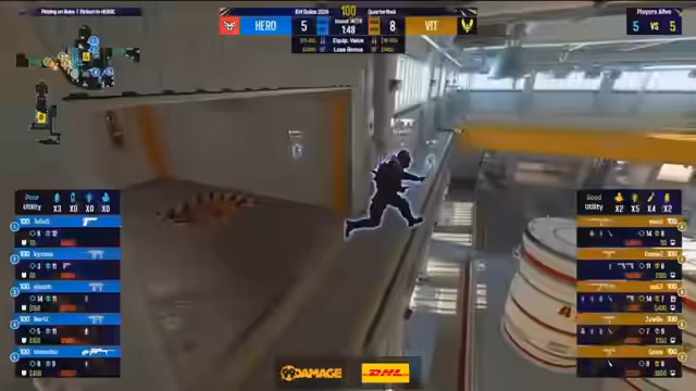 00:44:41Das Viertelfinale zwischen Vitality und Heroic beginnt auf der Map de_nuke. Vitality startet als Terroristen auf der A-Seite und gewinnt die Pistolenrunde durch geschicktes Positionieren und klare Kills. Anschließend halten sie auch die ersten Waffenrunden fest. Der Spieler Apex von Vitality zeigt eine starke Leistung und führt sein Team früh zu einer deutlichen Führung.
