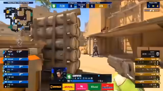 03:37:54Alternate Attacks befindet sich in einer schwierigen Lage, da Falcons die Zeit gut nutzen und Druck ausüben. Ein Save wird erwartet, da die Zeit abläuft und keine guten Optionen für einen Angriff auf den Spot bestehen. Falcons dominieren mit gut getimten Nades und kontrollieren die B-Seite effektiv. Für Alternate Attacks ist es entscheidend, in den nächsten Runden eine dominante erste Hälfte zu zeigen, um nicht ins Hintertreffen zu geraten. Falcons hingegen setzen auf minimales Investment, um auf die A-Seite zu gelangen, und nutzen Mollys und Smokes strategisch. Perks lauert im T-Spawn, während Attics versucht, die zweite Runde fehlerfrei zu gestalten. Die Spieler von Alternate Attacks, insbesondere Orsek, sind seit mehreren Jahren im Team und gelten als zuverlässige Bank. Trotz individueller Stärke konnte Orsek in Köln bisher nicht seine Top-Leistung abrufen, profitiert aber von einem starken Team.