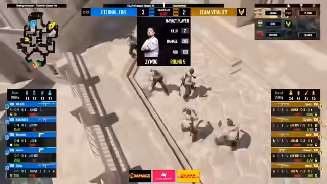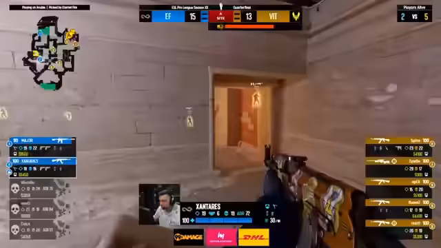 07:00:25Das Match zieht sich über in eine, später sogar in mehrere Overtimes. Beide Teams vergeben mehrfach die Möglichkeit, das Spiel für sich zu entscheiden. Die Mitspieler kämpfen verbissen um jeden Punkt, während der Druck auf den Spielern lastet. Entscheidende Einzelleistungen von Spielern wie XANTARES halten Eternal Fire im Spiel, während bei Vitality Frustration aufkommt, da sie ihre Chancen nicht nutzen können. Es kommt zu Herzattacken-Momenten für die Zuschauer und die Kommentatoren.