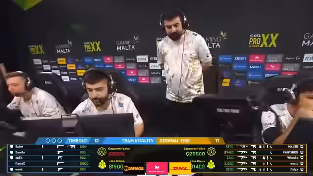 04:02:37Eternal Fire kämpft mit dem Druck des MR12-Formats, das wenig Zeit für Adaptionen nach verlorenen Runden lässt. Nach drei verlorennen Waffenrunden auf A wird das Team aufgefordert, seinen Fokus von A weg und auf ein 3-1-1-Setup mit mehr Bewegung in der Mitte und auf B zu verlagern. Analysten befürchten, dass ein solches Setup auf Anubis ohne Map-Kontrolle zu gefährlich ist.