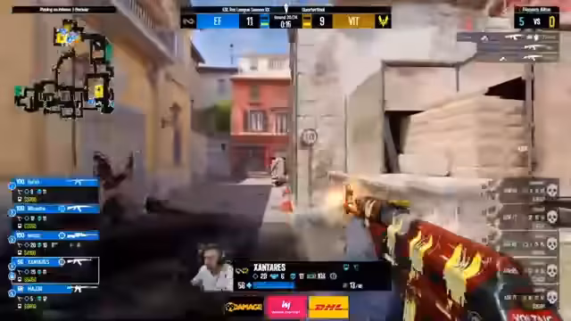05:17:09Die erste Runde auf Nuke offenbart bereits die taktische Tiefe beider Teams. Eternal Fire startet aggressiv auf der A-Seite und nutzt ein cleares Secret-Setup, das zu einem ersten fragilen Erfolg führt. Vitality analysiert das Spiel und reagiert vorsichtig, während die Dynamik des Spiels auf dem A-Site-Duell mit Apex und Santaris im Vordergrund steht.