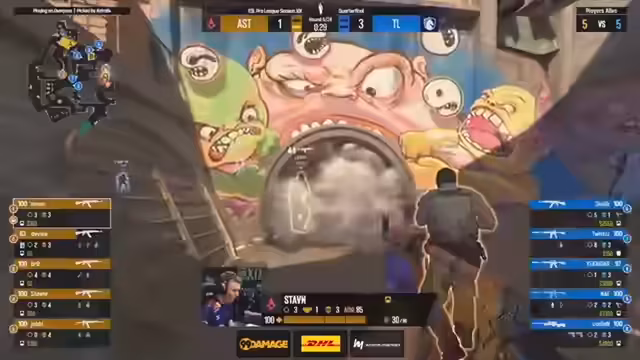 00:34:15Team Liquid führt mit 3:0, wobei Skiles als einziges Talent im Line-Up von Liquid hervorgehoben wird. Astralis gewinnt die erste Full Buy Runde und verkürzt auf 1:3. Team Liquid dominiert weiterhin und erhöht auf 5:1. Astralis hat Probleme, sich auf dem Server zu positionieren, während Team Liquid ihre Utility gut einsetzt. Device verliert ein Duell gegen Nepp. Team Liquid kontrolliert die B-Side, während Astralis die Kontrolle verliert. Bro sichert sich einen Solo-Kill, aber Team Liquid plant die Bombe und gewinnt die Runde. Team Liquid führt mit 6:1. Astralis nimmt ein Timeout. Astralis gewinnt eine Runde dank eines langsamen Executes von Team Liquid. Die Kommentatoren diskutieren über die Bühnenaufteilung und die fehlende Interaktion mit dem Publikum. Stair erzielt Multi-Frags mit der Püstel. Astralis gewinnt weitere Runden und verkürzt den Rückstand. Team Liquid ist langsam in ihren Executen, was Astralis ausnutzt. Astralis rotiert schnell und übt Druck aus. Team Liquid nimmt ein weiteres Timeout. Astralis gewinnt eine wichtige Runde und verkürzt auf 4:7.
