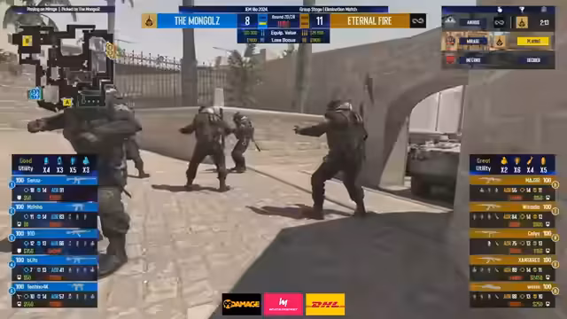 01:18:11Auf der zweiten Map Mirage haben sich die Mongols anfangs weiterhin dominant gezeigt und die Pistolenrunde gewonnen. Eternal Fire reagiert jedoch mit einem erfolgreichen Force-Kauf, der ihnen die erste Runde auf Mirage brachte. Die Änderung in Taktik und Spielweise von Eternal Fire, mit defensiverem Aufbau und besserem Lesen der Mongols, zeigt erste Wirkung. Die Mongols zeigen jedoch weiterhin ihre Stärke in Einzelduellen und halten die Führung in dem Best-of-3-Match.