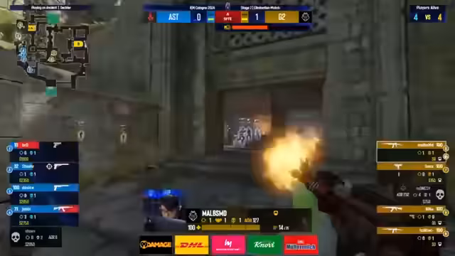01:47:12Im Verlauf der zweiten Hälfte auf Mirage kämpft sich G2 zurück und sichert sich die erste Waffenrunde der zweiten Seite. Hunter zeigt hierbei eine starke Leistung im Mid-Control, was zuvor bei Astralis nicht vorhanden war. Die Zusammenarbeit im Mittelfeld zwischen Hunter und Conforce führt zu einem ersten Erfolg gegen das unkoordinierte Spiel der Dänen und zwingt Astralis in die Defensive.