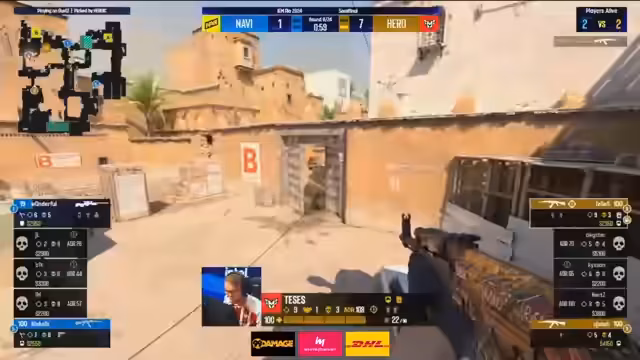 02:01:32Navi agiert nach dem Gewinn der Pistolenrunde sehr diszipliniert und sucht frühzeitig den Fight auf der A-Seite. Sie gewinnen die Runde und gewinnen sogar eine Waffe von Heroic. Doch in der nächsten Runde entscheidet sich Navi für einen riskanten A-Split. Heroic kontert und Dexster, in einem 2 gegen 3, nutzt den niedrigen HP-Stand der Gegner, um mit der Scout die Runde für sich zu entscheiden.
