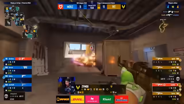 Bei der IEM Cologne 2024 trafen in der Gruppenphase B MOUZ und Team Vitality aufeinander. Nach einem klaren 12-0 auf Dust2 zeigte Vitality starke individuelleleistungen mit S1mple und Spinkz. Auf Vertigo kämpfte sich MOUZ zurück, doch Vitality behielt in der dramatischen Overtime die Oberhand. Beide Teams qualifizierten sich für die nächste Turnierphase.