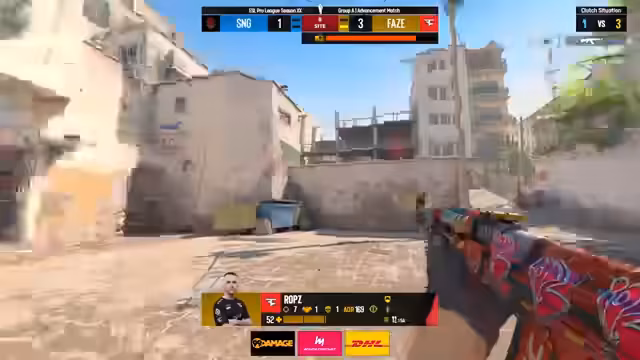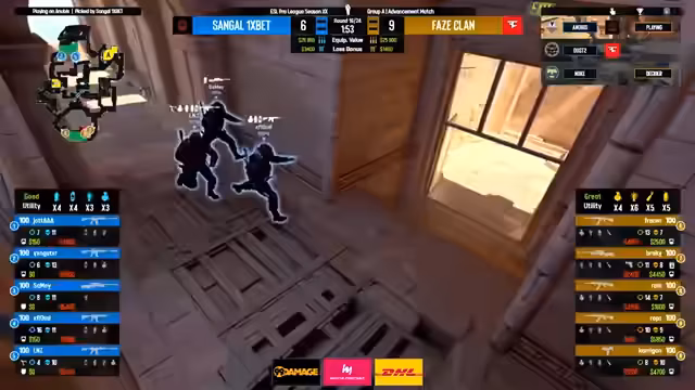 04:56:33Fa Clan und Sangle wechseln nun zu Dust II, der zweiten Map des Best-of-3. FaZe beginnt als Angreifer und nutzt ihre Erfahrung auf der Pistolen-Map. Die Runde wird mit solidem Midround-Calling gespielt und ein First Entry gelingt FaZe. Sie zeigen ein klares Konzept, das den CT-Spieler Sangle unter Druck setzt. Die Runde endet mit einer klaren Präsenz von FaZe.