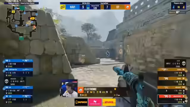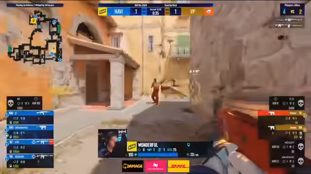 00:40:11Die erste Map, Inferno, beginnt. Navi verliert die Pistolrunde und entscheidet sich zum Save, was als strategisch klug angesehen wird. VP nutzt den Vorteil und geht früh in Führung. Navi kann jedoch schnell zurückkämpfen und führt 1:0. Die Anfangsrunden zeigen den typischen Kontrast: VP spielt langsam, kontrolliert und abwartend, während Navi aggressiv und vorausschauend agiert und versucht, durch schnelle Aktionen eine Dominanz zu etablieren.