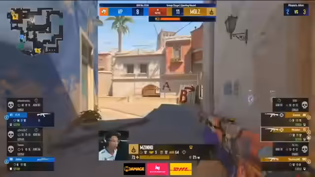 03:38:33Das letzte Best-of-One-Spiel des Tages startet zwischen Virtus Pro (VP) und Mongols auf Mirage. Das Match-up wird als auf Augenhöhe beschrieben, mit einem defensiveren Spielstil von VP und einem sehr aimlastigen, aggressiven Stil von Mongols. Eine persönliche Anekdote betrifft die geänderten Trikotfarben von Mongols, die der Kommentator als weniger ansprechend im Vergleich zur ursprünglichen Vari empfindet. Das Spiel beginnt, und Mongols zeigt sofort aggressive und erfolgreiche Aktionen, während Schwächen in der Defensive von VP deutlich werden.