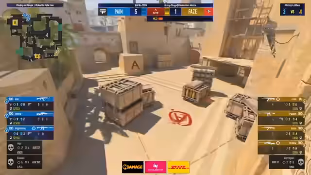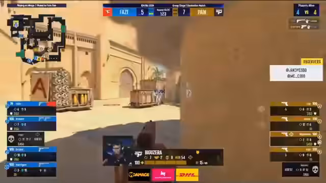 07:13:13FaZe liegt mit 8:12 zurück und kämpft um sein Überleben. Die Kommentatoren beschreiben die Situation als verzweifelt und weisen auf die falsche Taktik von FaZe hin, die sie bereits mehrfach angewendet haben und die von paiN mittlerweile erwartet wird. In der letzten Runde wird Brokey, der alles in einer 1v3-Situation entscheiden muss, durch einen teaminternen Flash von einem Mitspieler geblendet ("bodenlose Teamflash"), was den Spielzug vereitelt und die Niederlage besiegelt.
