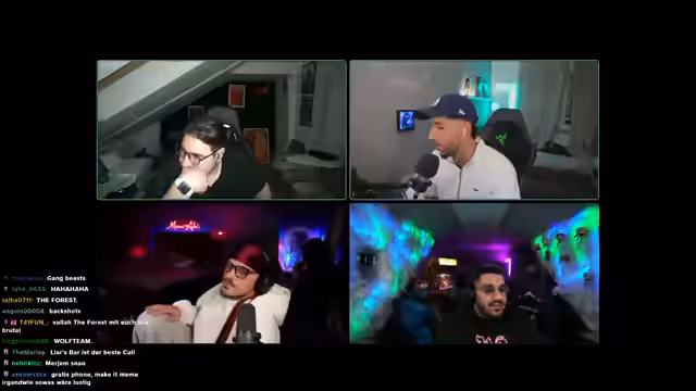 01:43:09Die Streamer spielen nun Liar's Spa intensiv und die Stimmung wird extrem dramatisch und aufgeladen. Es kommt zu vielen Vorwürfen, lautem Geschrei und Beschimpfungen, insbesondere als einer von ihnen bei einem Falsch-Lügen ertappt wird. Das Spiel wird als verrückt und nervenzerfetzend beschrieben. Alle Spieler sind extrem aufgewühlt und der Chat feuert mit. Es wird auch die Möglichkeit einer Chaos-Karte erwähnt, die das Spiel noch unberechenbarer machen könnte.