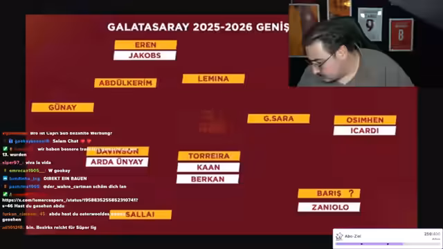 00:55:37Der Streamer vergleicht die Transferaktivitäten von Fenerbahce, Besiktas und Galatasaray. Er äußert sich überrascht über die vielen Transfers von Fenerbahce und zählt sieben Neuzugänge auf. Auch Besiktas habe mehr Spieler verpflichtet als Gala. Er betont, dass Galatasaray noch drei bis fünf Transfers benötige, darunter einen Mittelfeldspieler, einen Flügelspieler, einen Zehner und einen Rechtsverteidiger. Er kritisiert die türkische Sportjournalismus und die Art und Weise, wie Nachrichten immer wieder neu formuliert werden. Der Kader von Galatasaray sei unzureichend für die Champions League. Er vergleicht den Kader mit einem Fiat, der nicht fährt, während Fenerbahce viele Transfers getätigt habe. Er kritisiert, dass Galatasaray immer auf den letzten Drücker agiere und die Kaderplanung schlecht sei. Er hofft, dass Besiktas die Conference League gewinnt und kritisiert die Regelung, dass türkische Vereine vor Playoff-Spielen freibekommen.