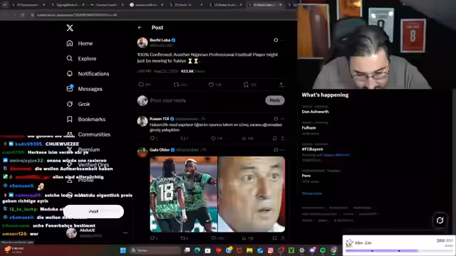 00:16:10Es wird über Baris Alper diskutiert, dessen Verhalten kritisiert wird, da er sich wie ein Star benehme, obwohl er nur gegen unterklassige Vereine getroffen habe. Im Gegensatz dazu wird Muslera als Löwe bezeichnet, der jeden Cent verdient habe. Der Streamer berichtet von einem Treffen mit Oseman und Icardi, was er als Champions-League-Finale für sich bezeichnet. Es wird spekuliert, dass Baris Alper zu PST wechseln könnte, was jedoch bezweifelt wird. Der Streamer lobt Lemina als Löwen und kritisiert türkische Spieler als Verräter. Er betont seine Unterstützung für Gala und lehnt Spekulationen ab. Es wird kritisiert, dass Fenerbahce jeden Tag Transfers tätigt und Mourinho Fenerbahce auseinandergenommen habe. Der Streamer kritisiert Fabrizio und kündigt an, ihn bald zu ficken.