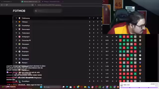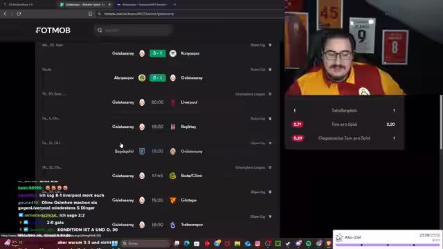 02:32:46Der Streamer reagiert auf das Spiel Alanyaspor gegen Galatasaray und wartet auf den Chat. Er äußert sich frustriert über die Leistung der Mannschaft und die Situation der Fans. Er kritisiert, dass die Spieler schlecht spielen und die Fans am Ende darunter leiden. Er fragt sich, ob es wirklich Menschen gibt, die Okan Buruk unterstützen. Er erwähnt, dass 200 Millionen ausgegeben wurden und fragt sich, ob Okan Buruk kündigen soll. Er bereitet den Stream vor und fragt die Mods, ob sie da sind. Er sagt, dass er bessere Trainerpositionen machen würde als Okan Buruk und kritisiert die Statistik. Er erwähnt eine Abstimmung, bei der 82% für Istifa (Rücktritt) gestimmt haben. Er fragt nach der Stimmung auf Twitter und was Hacı Osmano oder gesagt hat. Er kritisiert die Leistung der Mannschaft gegen Alanyaspor und vergleicht sie mit einem Spiel gegen Prime Barcelona.