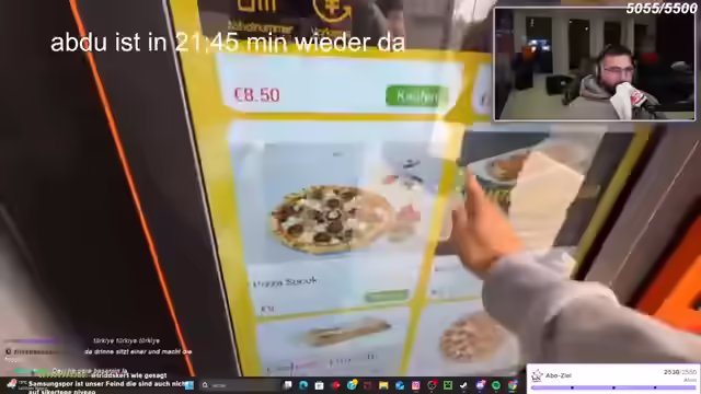 02:06:47Der Streamer erkundet verschiedene Automaten in Köln, darunter einen Snackautomaten mit Standard-Sortiment und Vapes. Er entdeckt einen TikTok-Account, der Videos von Kunden postet, die beim Kauf gefilmt werden, was er als fragwürdig empfindet. Er kauft eine "Pickle in a Pouch Garlic Flavoured Garlic Joe" und beschreibt den intensiven Knoblauchgeruch. Anschließend entdeckt er einen Pizza-Automaten und interviewt den Betreiber, der die Idee während der Corona-Zeit hatte. Er bestellt eine Sujuk-Pizza für 9 Euro und bewertet sie als "Ghetto-Pizza" mit gutem Geschmack, aber wenig Tomatensauce. Er vergleicht den Preis mit einer Lieferpizza und überlegt, ob er sich dort ab und zu eine Pizza holen würde, wenn er in der Nähe wohnen würde. Diese Erkundungstour zeigt seine Neugierde auf ungewöhnliche Angebote und seine Bereitschaft, neue kulinarische Erfahrungen zu sammeln.