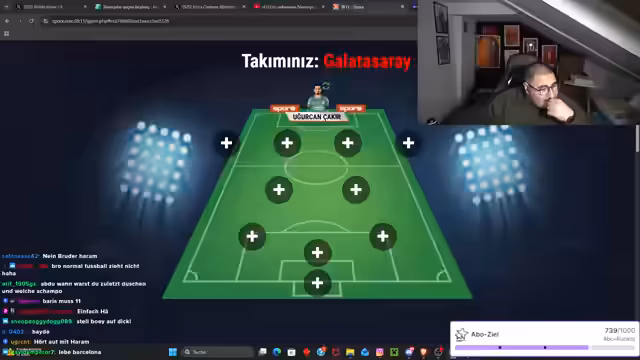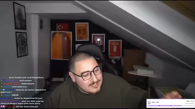 00:03:08Der Stream beginnt mit Begrüßungen und persönlichen Anmerkungen. Der Streamer erwähnt seinen Kollegen Digi, der nach Istanbul reist und für den er eine Einkaufsliste zusammengestellt hat, darunter ein Sané-Trikot. Es werden die Streamingzeiten während des Ramadan auf 23:00 Uhr bis 00:00 Uhr festgelegt. Zudem gibt es eine kurze Diskussion über den HSV und die generelle Uninteresse des Streamers an anderen Ligen als der Süper Lig und der Champions League, da er Galatasaray als seinen einzigen Verein sieht.