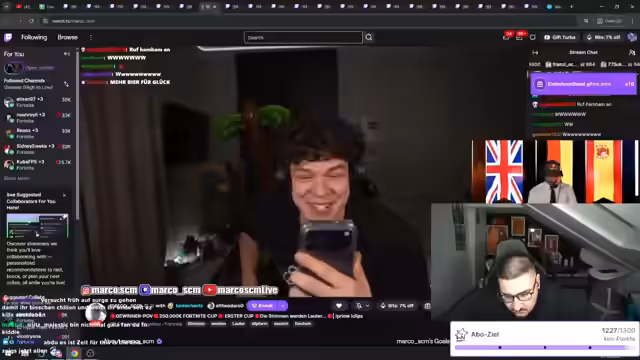 00:42:00Vor dem eigentlichen Start des Turniers diskutierte der Streamer über die Vor- und Nachteile von TikTok im Vergleich zu Twitch. Er behauptete, dass der Content auf Twitch höherwertiger sei und schlug einem Teammitglied, das auf TikTok streamt, einen Wechsel zu Twitch vor, um dessen Reichweite und Einnahmen zu steigern. Während der technischen Vorbereitung auf das Turnier, wie die Auswahl von Skins und die Überprüfung der Discord-Übertragung, wurde das Stream-Bild formativ im Hochkant-Modus festgelegt, basierend auf einer Abstimmung im Chat. Das Turnier selbst wurde als 'Build-Squad' ohne Tournament-Modus beschrieben.