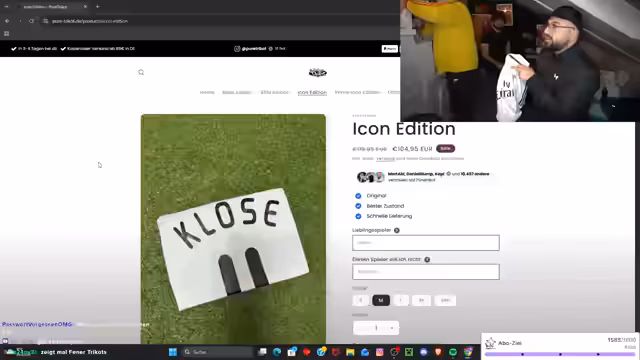 03:01:37Der Verkauf neigt sich dem Ende zu, wobei nur noch 'Prime Icon in M' Trikots verfügbar sind. Es wird eine spontane Aktion angekündigt: Die nächsten 20 Kunden, die ein 'Prime Icon in M' Trikot kaufen, erhalten eine Unterschrift von allen Anwesenden. Diese Geste soll den Abschluss des Verkaufs feiern und den Kunden einen zusätzlichen Anreiz bieten. Die Diskussionen über die Unterschriften und deren Wert spiegeln die Interaktion mit der Community wider. Es wird auch humorvoll über die 'verschwitzten' Unterschriften und die Bedeutung für die Fans gesprochen, was die persönliche Bindung zwischen Streamer und Zuschauern unterstreicht.