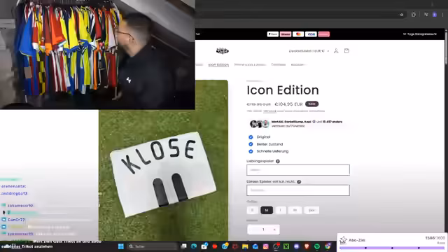 00:59:47Der Streamer beschäftigt sich intensiv mit der Personalisierung von Trikotbestellungen, wobei er auf spezifische Kundenwünsche eingeht. Ein Kunde namens Tim mit polnischem Nachnamen wünscht sich ein Messi-Trikot sowie ein Freestyle-Trikot, lehnt jedoch ein Gala-Trikot ab. Der Streamer zeigt sich begeistert von solchen individuellen Aufgaben und betont, dass er bei der Auswahl der Trikots großen Wert auf die Zufriedenheit der Kunden legt. Er erklärt, dass die Trikots nicht zufällig ausgewählt werden, sondern sorgfältig geprüft wird, ob sie dem Kunden gefallen könnten. Dies führt zu einer längeren Bearbeitungszeit, da jedes Trikot individuell betrachtet wird, um Enttäuschungen zu vermeiden. Ein weiteres Beispiel ist ein Kunde, der ein Cannavaro-Trikot bestellt hat, wobei der Streamer die Möglichkeit einer WM 2006 Edition anspricht und die historischen Details der Trikots erläutert.