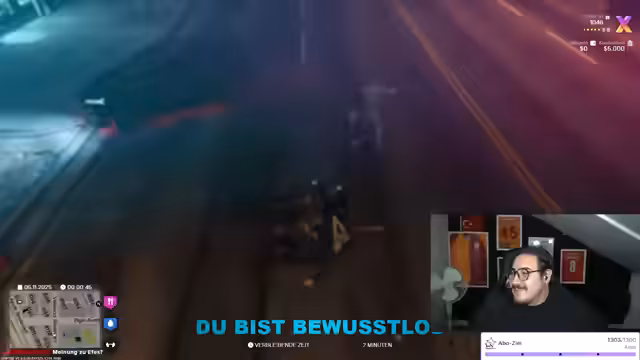 03:39:21Der Streamer steigt in das GTA Roleplay ein, nachdem er zuvor über Fußball und persönliche Pläne gesprochen hatte. Er findet sich unter Wasser wieder und muss seine 'Homies' anrufen, da er kein Telefon hat. Nach einigen Schwierigkeiten mit der Kommunikation und dem Finden eines Telefons, trifft er auf andere Spieler. Er wird schnell in einen Konflikt verwickelt, bei dem er und seine Mitspieler niedergeschlagen werden. Er äußert seine Frustration über die schnelle Eskalation und wünscht sich, dass man 'wie zivilisierte Menschen' spielen könnte. Die Polizei trifft ein, und es kommt zu Verwirrungen und gegenseitigen Beschuldigungen, wer angefangen hat. Der Streamer versucht, die Situation zu erklären und betont, dass er nur angegriffen wurde und sich verteidigt hat. Ein Polizist versucht, die Situation zu klären, aber es kommt zu weiteren Auseinandersetzungen und Beleidigungen gegenüber der Polizei, was schließlich dazu führt, dass der Streamer und seine Freunde verhaftet und ins Gefängnis gebracht werden.