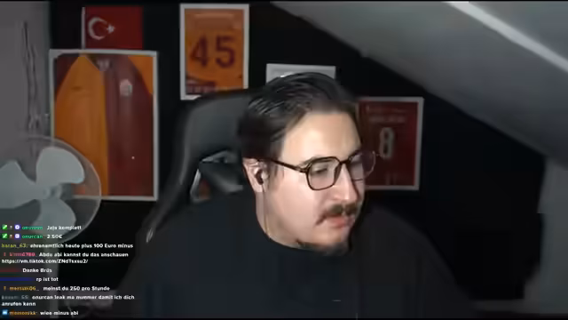 03:03:48Der Streamer reflektiert über den Verlauf des Tages und kündigt an, bei guten Zuschauerzahlen einen 24-Stunden-Stream zu veranstalten. Er drückt seine Frustration über den Verlust von 100 Euro aus und scherzt über die Reaktionen seiner Freunde. Es wird über zukünftige Aktivitäten wie Gym-Besuche und Finanzamt-Termine gesprochen. Der Streamer richtet emotionale Appelle an seine Zuschauer, die er als „Brüder“ bezeichnet, und fragt, wo sie während der Champions League waren, da er sich allein gefühlt hat. Er bewirbt auch sein neues TikTok-Video und spricht über seine Leidenschaft für Fußball, insbesondere für Galatasaray.