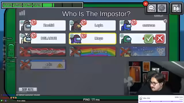 02:12:08Die Among Us Runden werden intensiver, wobei die Spieler versuchen, die Impostoren zu entlarven. Es gibt hitzige Debatten und Anschuldigungen, insbesondere zwischen den Spielern Maus, Matt, Edis und Abdo. Die Spieler versuchen, ihre Alibis zu verteidigen und andere zu überführen, was zu Verwirrung und Misstrauen führt. Die Diskussionen drehen sich oft um die Standorte der Spieler und die Reihenfolge der Ereignisse, was die Suche nach den Impostoren erschwert. Die Spieler sind frustriert über die Schwierigkeit, die Wahrheit herauszufinden, und es kommt zu emotionalen Ausbrüchen, da niemand als Impostor entlarvt werden möchte.