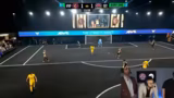 00:18:52Das Spiel selbst ist geprägt von einem defensiven und unorthodoxen Spielstil beider Teams, was den Streamer frustriert. Trotz einer guten Leistung des Torwarts Reichel bleibt es lange 1:1. Die Nervosität steigt, besonders als mehrere Male strittige Abseits- und Foulsituationen vorliegen, die vom Schiedsrichter nicht als solches anerkannt werden. Im Verlauf des Spiels gibt es sogar einen umstrittenen Reverse Penalty, der zu einem Elfmeter für den Gegner führt. Die Schiedsrichterentscheidungen werden vom Streamer als systematisch ungerecht gegenüber seinem Team empfunden, was seine Wut steigert.