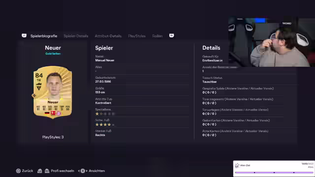 01:36:15Es wird diskutiert, dass das Spiel anders ist und L1-Bus entfernt wurde, was es skilllastiger macht. Der Streamer interagiert mit Zuschauern, beantwortet Fragen und geht auf Kommentare ein. Er spricht über das Öffnen von Packs und die Langeweile, die dabei aufkommen kann. Es wird erwähnt, dass noch viele Packs geöffnet werden müssen. Der Streamer äußert die Absicht, einen gezogenen Spieler zu behalten, da dieser gute Werte hat. Es wird nach Tipps für ein bevorstehendes Spiel gefragt und eine Umfrage unter den Zuschauern gestartet. Der Streamer bedankt sich für die Zuschauerzahl und erklärt, wie man Werbung vermeiden kann. Es wird erwähnt, dass bis jetzt kein krasser Spieler gezogen wurde. Der Streamer erinnert sich an frühere Nose-Pack-Formate von YouTubern. Er betont, dass er sich geistig auf ein wichtiges Ereignis freut und dass er sich überlegt, Wiederholungen laufen zu lassen, wenn er offline geht. Es wird überlegt, FIFA Points einzusetzen und die Frauen im Spiel kritisiert. Es wird überlegt, wie man die Kings günstiger bekommen kann, um Plus zu machen.
