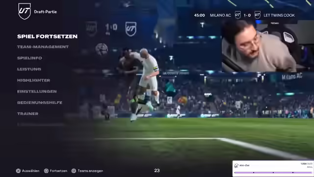 00:41:04Der Streamer bedankt sich bei seinen Zuschauern und betont, wie sehr er die aktuelle Situation genießt. Er erinnert sich an seine Anfänge mit nur zwei Zuschauern und wie er seinen Kollegen vom Streamen erzählte, die dies belächelten. Aus diesen zwei Zuschauern sind nun 2300 geworden. Er zieht den ersten Gala-Spieler und ist aus Respekt nicht bereit, ihn abzustoßen. Der Streamer beschreibt ein überwältigendes Gefühl und betont, wie geisteskrank gut er in FIFA sei. Er erwähnt, dass trotz der hohen Zuschauerzahl viele andere Streamer gleichzeitig online sind. Er spricht darüber, dass er morgen nicht im Stadion sein wird und bittet die Zuschauer, darüber nicht nachzufragen, sondern selbst nachzudenken. Er plant eine Watchparty und deutet an, dass es Gründe gibt, warum er nicht bei DAZN sitzt, und bittet die Zuschauer, in der Vergangenheit nach Antworten zu suchen.