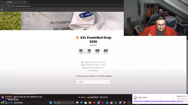 00:04:59Der Stream beginnt mit der Begrüßung des Chats und der Erwähnung der langen Abwesenheit vom Streamen. Als Grund werden technische Probleme bei TikTok genannt. Anschließend geht der Streamer auf die geänderten Voraussetzungen für seine YouTube-Videos ein, die zur Sperre führten. Er erwähnt, dass er wegen eines Virus und seiner Abwesenheit keinen Content im letzten Monat produzieren konnte, kündigt aber einen anstehenden PurTrikot-Drop für Freitag an und die Vorbereitung auf die WM.