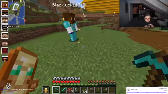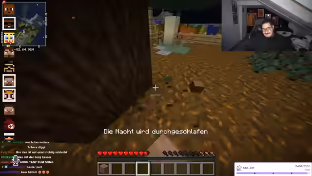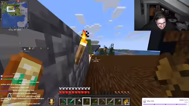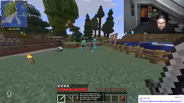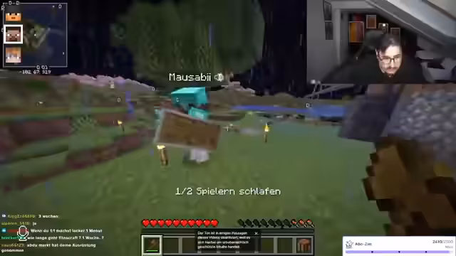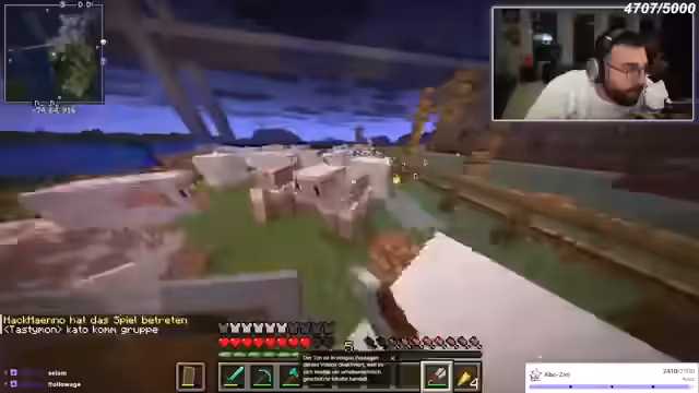 03:44:40Der Streamer spielt Minecraft in Kooperation mit Halid Abi. Gemeinsam sammeln sie Ressourcen in Höhlen, verlieren aber Ausrüstung durch Angriffe. Sie planen den Bau eines 'Galastadions' und einer Brücke, die jedoch mehrfach angegriffen wird. Der Streamer betont seine defensive Haltung und sammelt Materialien wie Schafwolle für Farm-Upgrades, während er technische Probleme mit Zäunen und Spawnpunkten diskutiert.