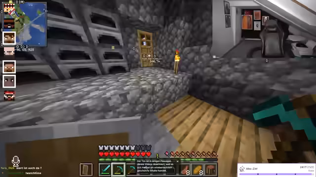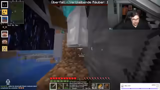 10:45:15Das Ziel für den aktuellen Stream ist, die Zuschauerzahl auf 2.400 zu steigern, da der Rekord bei 2.500 liegt. Der Streamer startet in den Seacraft-Server, begrüßt seine Zuschauer und fordert sie auf, Adblocker zu deaktivieren. Er kündigt an, in die Höhlen einzutauchen und berichtet, dass er bereits Diamanten gesammelt hat. Die Mitspieler sollen mit Goldrüstung und Werkbank ausgerüstet werden.