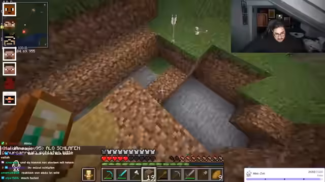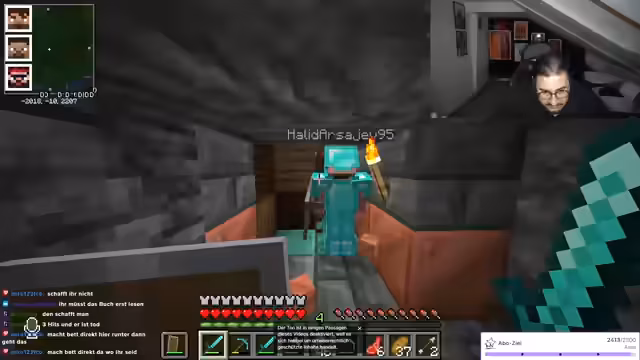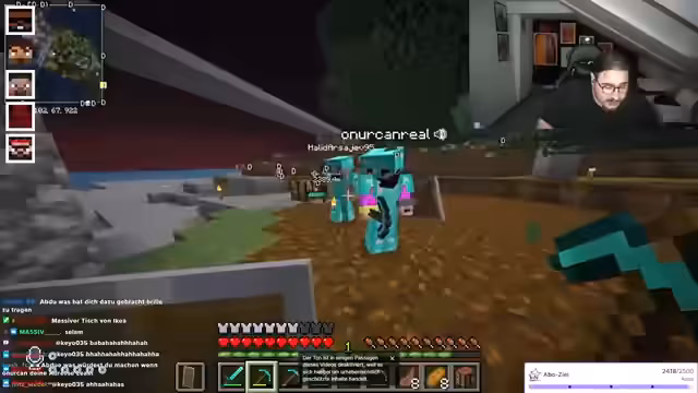 00:10:01Nachdem der Streamer technische Probleme bei der Verwaltung von Stream-Elements beschreibt und über eine mögliche Überhitzung seines PCs spekuliert, wechselt der Fokus zum Gameplay im Spiel Minecraft. Er interagiert intensiv mit seiner Community und mit anderen Spielern, insbesondere Yusuf. Gemeinsam erkunden sie eine Minecraft-Welt, wobei es zu Konflikten und Spekulationen darüber kommt, wer ein virtuelles Haus beschädigt hat, was zu einer Diskussion über Sabotage und Rachepläne führt.