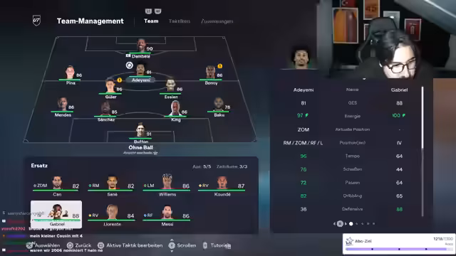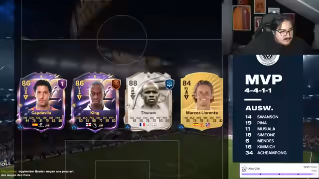 02:19:49Die Diskussion dreht sich um eine verlorene Weekend-League-Partie, wobei der Streamer seinen Gesprächspartner für die Niederlage kritisiert, insbesondere da dieser zuvor mit einem 15:0-Sieg geprahlt hatte. Er bezeichnet den Verlust als peinlich und hinterfragt die Glaubwürdigkeit des Spielers. Es wird auch über die Leistung von Taylan Mut als 'neuen Messi' und dessen angebliche Nominierung für die Nationalmannschaft gescherzt, was die überzogenen Erwartungen an türkische Spieler humorvoll aufs Korn nimmt. Die Konversation wechselt zu weiteren FIFA-spezifischen Themen, wie der Frage nach der Verfügbarkeit von Spielern wie Kurishma und technischen Problemen mit dem Mikrofon, was die allgemeine Stimmung des Streams widerspiegelt, die zwischen ernsthaftem Gaming und humorvoller Interaktion schwankt.
