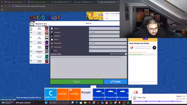 00:45:04Nach einigen organisatorischen Herausforderungen beginnt der Gaming-Abend. Die Teilnehmerzahl steht fest, und es wird entschieden, mit Teams von vier Spielern zu starten. Der Streamer hat eine Vielzahl an Spielen wie Scribble, Higher Lower und Golf vorbereitet. Punkte werden für jeden Sieg vergeben, um den Abend spannend zu gestalten. Die Stimmung ist entspannt und aufgeregt, da die Teilnehmer sich auf den bevorstehenden Spielspaß vorbereiten.