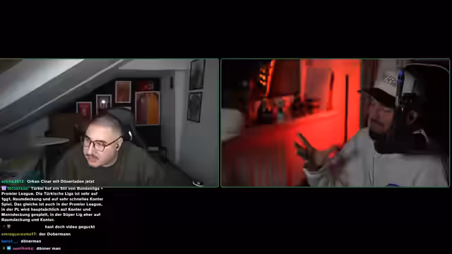 01:01:59Der Streamer vergleicht das Spielniveau und die Atmosphäre in der türkischen mit der deutschen Bundesliga. Er erklärt, dass die meisten türkischen Vereine außer den Top-Vieren Galatasaray, Fenerbahçe, Beşiktaş und Trabzonspor einen defensiven, bunkernden Stil praktizieren. Im Gegensatz dazu, so seine Erfahrung, ist die Bundesliga niveauvoller und jeder Spieler, den er befragte, ist der Meinung, dass Gala in der Bundesliga regelmäßig um die Meisterschaft und die Top-5 mitspielen könnte, vorausgesetzt Bayern München hat eine schwächere Saison.
