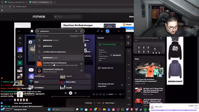 02:49:44Der Streamer bereitet sich auf die spätere Watchparty vor und analysiert die aktuelle Situation seiner Lieblingsmannschaft Galatasaray. Er erwähnt, dass Galatasaray in der Champions League um die Top 8 kämpft, während Fenerbahce in der Europa League nur auf Platz 20 steht. Mit emotionalen Ausdrücken wie 'Burnout' und 'ungekippt' beschreibt er die angespannte Stimmung vor dem entscheidenden Spiel gegen Bayern München. Er plant, sein Trikot zu wechseln und technische Einstellungen für die Watchparty vorzunehmen, während er den Chat über die Wichtigkeit des Spiels informiert.