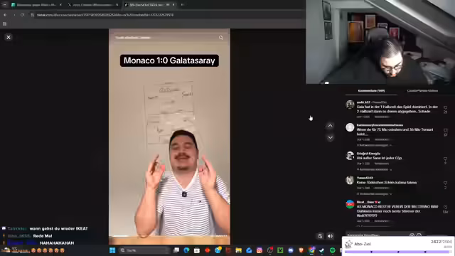 04:53:46Während des Live-Streams verfolgt der Streamer intensiv das Galatasaray-Spiel gegen Monaco. Er analysiert die Spielentwicklung mit Fokus auf Punktestände und Chancen, betont dabei die Bedeutung eines Sieges für die aktuelle Saison. Emotional kommentiert er unentschiedene Spielausgänge und äußert sich zu taktischen Aspekten, während die Zuschauer mit Live-Kommentaren interagieren. Die Diskussion kreist um die aktuelle Tabellensituation und erforderliche Spielstrategien, wobei häufig die Notwendigkeit von Siegen hervorgehoben wird, um in der Liga zu bestehen.